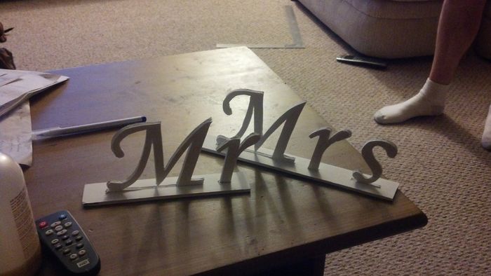 FH has been very helpful. He painted these for me after I removed the labels and taped them up. He also cut out the bottom so that we could put lights in them. There are more bottles, but those will have our pictures on them and stalks sticking out. ...