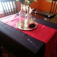 4760 days agoSo I kind of switched up my centerpieces, and made some napkin holders. Don't mind the napkins, lol, they are a cut up t-shirt but the napkins are the same color! And the flowers in the bottles will be real and hopefully the runner less wrinkled!!!...