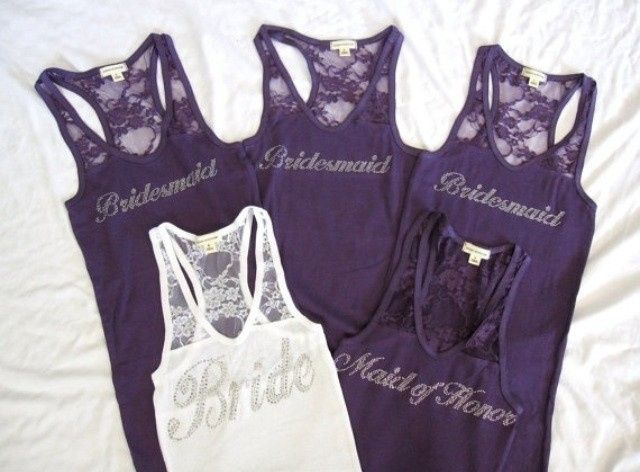 So Im sure you ladies have seen the half lace tank tops with rhinestones of bride and MOH and BM's on them. They go for about 15-20$ a piece. I have desperately looked online to find the tank tops so I can just do them myself. Know of any places that...
