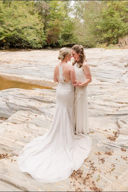 Covid and some other stuff has got me down. Cheer me up by posting pics of YOU (not a model, it's too fake) in your dress? It would be a nice lift. Here's mine at my final fitting and one getting ready with my girls on game day.See that bridal stress...