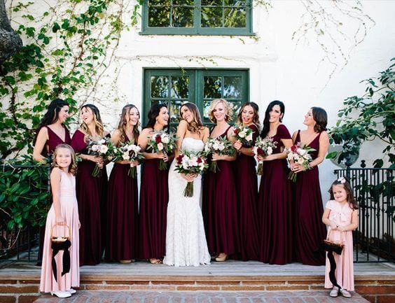 I have seen it done both ways, they either wear white or the same color as the bridesmaids, I’m not sure which one is better! Thoughts? Our color is burgundy (Cabernet technically).
