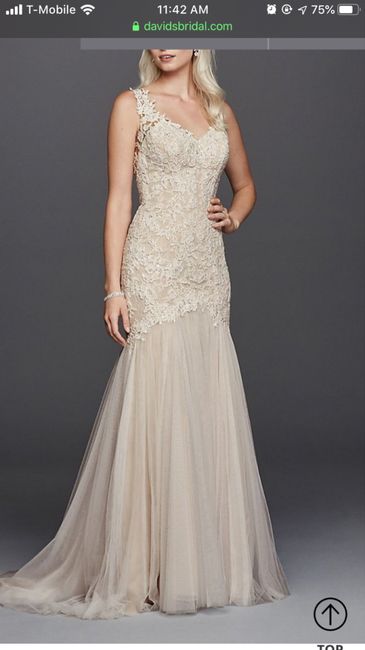 I fell in love with this gown, and decided to go with it! (This is the sample dress) I would love to see the gowns everyone else has picked! long story short, the dress that was ordered for me is a bit different. It has a sheer top versus having it...