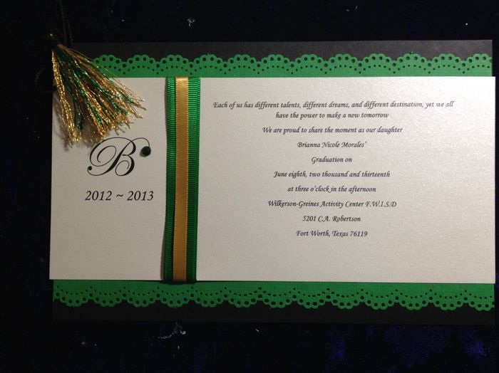 I am helping a friend of mine on her daughter's graduation invitation card, I'm making it free for her, they kinda hit rock bottom financially. Well my son is against the whole tassel thing, he said it's too much, while FH thinks the tassel is a must...