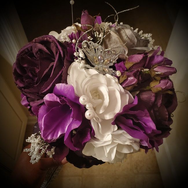How many of you are making your own bouquets?! My FMIL and I have been crafting them today. The arrangements are complete. Just have to place the finishing touches on them. The first is my bouquet. The second is MOH bouquet. The third is BM bouquet....