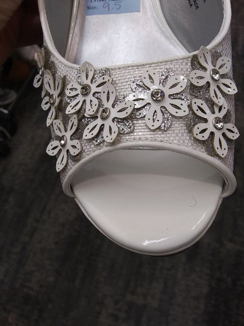 I got my wedding shoes at Macy's. I found them on the clearance rack when I wasnt looking! I think they're so comfortable and beautiful. They're perfect for my conservatory wedding. Let's see your shoes!!