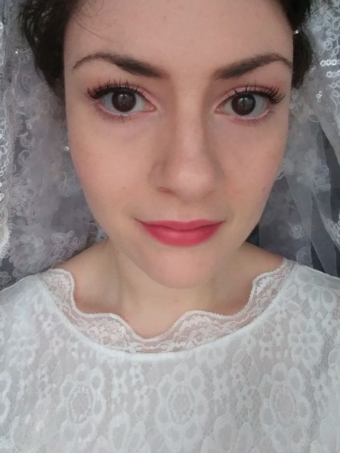 Hey everyone. So, I think I am going to DIY my makeup. I practiced again today and tried on the look with my gown and veil and took photos in various light and with flash. I think it looks good.... For the most part. Lol I am not too sure about the...