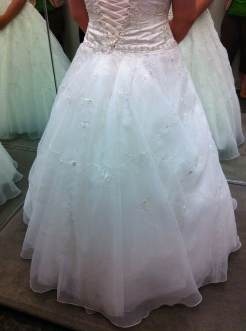 So Davids Bridal alterations department has redeemed themselves from the nightmare that they started. I went in for my final "final" fitting last night and the second seamstress fixed my dress after taking in the sides a lot and it fits beautifully...
