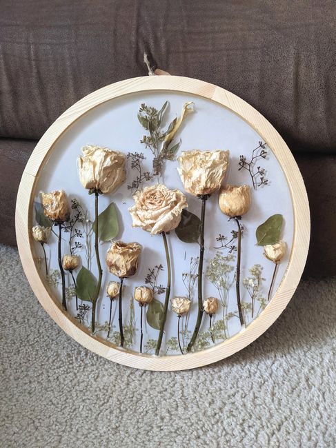 I just let my bouquet, and hubby's boutonniere dry out. The bouquet was so lovely, I couldn't part with it. The roses were off white and look better than the photo. I also dried my granddaughter's flower basket- it was in shades of pink and blue. We...
