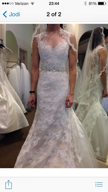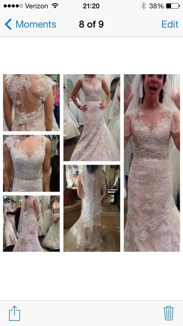 Hi All! After a hard decision, I said yes to the dress! The shopping experience wasn't so great because I had an awful, awful consultant, but im very happy with my dress. Its perfect! I covered my face cuz I had such a strange look going on. Lets see...
