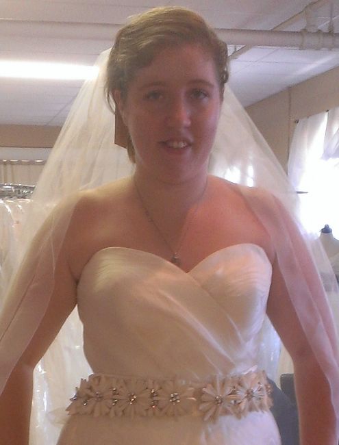 i went to try on my dress yesterday, just to show my mom.. not for a fitting. she lives in a different state, so this is the first time she has ever seen it on in person! please excuse my "non-bridal" look of the day! lol.