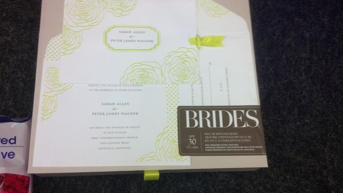 I wish I had taken a picture... but I assumed that I could find them online. Alas- I cannot! I was at the dollar tree over my lunch break, and there were wedding invitation sets for sale. 40 invitations (with RSVP cards and envelopes for both)... for...