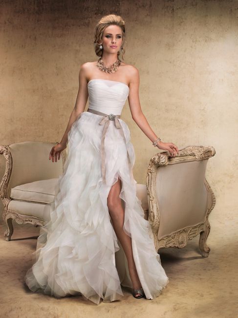 So We've been looking for a dress similar to the two in the pics. I want a cocktail length tulle gown with at least three layers of tulle, not just one. My Matron has a larger cheats so a sweetheart might be hard for her to pull off. I love both...