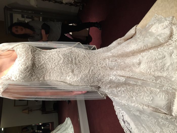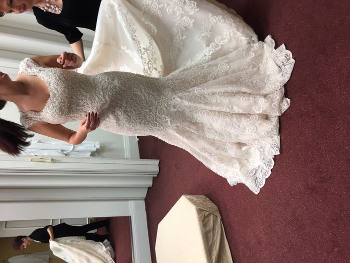 It's not the finished project (in fact it's just the mock-up) But I found lace that was closer to my dress at the fabric store than what DB gave me (they gave me the wrong fabric)... but I'm super excited about my dress coming together! Yay! pic1 my...