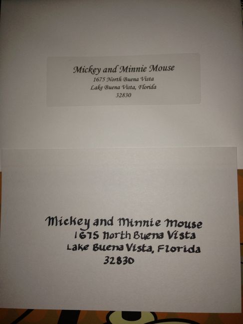 I'm getting ready to address and send out our invites.. Top one is a clear label and the second is my handwriting (with a fancier marker vs a regular pen or fine tip marker). The label is easier and most likely neater (more straight and equally...