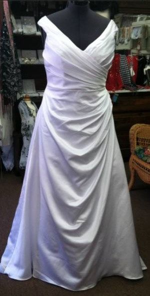 The straps are being taken up an entire inch, the hem is coming up 3 inches and the train is being removed entirely so no need for a bustle. She is also going to nip it in just a little under each arm because I thought it was a little gapped. She...