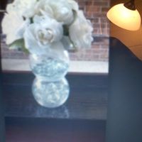 4260 days ago1). photo is of a centerpiece I am thinking about with hot pink roses instead of white. 2). photo is of the vases that I am going to make because vases already made are 17-25 bucks each and I can make these for 3. 3). will be guest table arrangement...