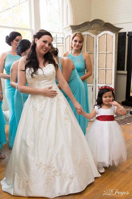What is your flower girl wearing?? Do you have her wearing anything in her hair? I want mine to wear a flower crown but not sure if she'd keep it on..she's almost three lol no telling with toddlers