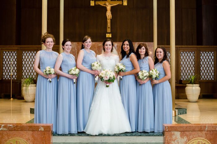 Can any ladies out there give me some advice on bridesmaid dresses that could work with my wedding dress? I have a ivory lace gown with a champagne material under. See the link posted... http://www.allurebridals.com/products/9215 I have ideas in mind...