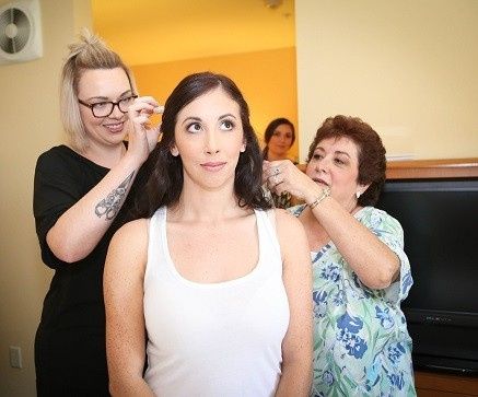 I posted this on WTF Wednesday but I'm going back and forth about wearing a necklace. My dress has little clear beading on the bodice. I'm wearing a blingy belt and a blingy hair comb. I was thinking that big earrings and just a bracelet would finish...