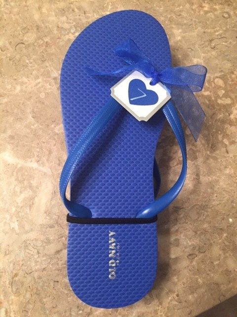 I am having a basket full of dancing shoes (old navy flip flops) in our colors (colbalt blue & white) with various sizes on the dance floor. I have been thinking about how I am going to present them in the basket and decided on this so guests know...