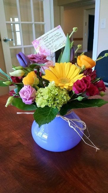 This gorgeous bouquet was delivered to me at work today! It's so beautiful I immediately thought "this would make a gorgeous centerpiece" I find myself doing that a lot lately! Can't imagine I'm alone in this!
