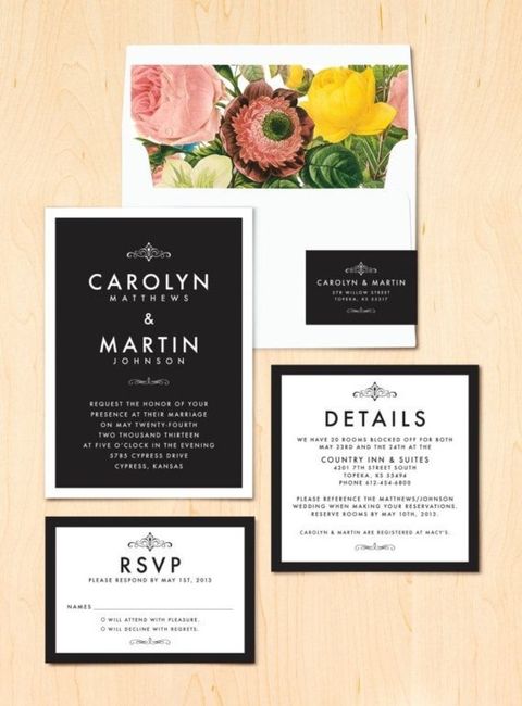 I have narrowed my invites down to 3 styles. FH doesn't care, and I'm having a hard time picking just 1. All will be on white paper with black font. Cont in comments...