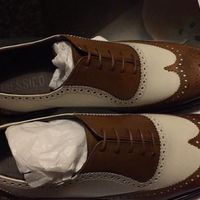 3680 days agoFH and his guys are wearing the Allure tan tux, with the guys in blue ties, and FH in a coordinating bow tie. FH loves shoes and got these really great wing tips, but is having second thoughts. I know it's technically wrong to wear wing tips with a...
