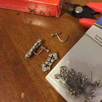 3756 days agoI have a pair of my grandmother's costume earrings that I want to wear for the wedding. They're clip on (like the old screw on kind) so I need to make them studs. I bought this jewelry cement stuff at Jo-Ann, cut off the clip part and glued posts on....