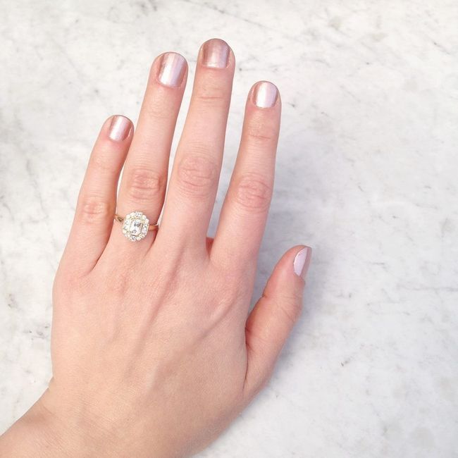 Here is mine! Traditional and classic, kind of like my guy The stone is so clear it's absolutely stunning in the right light (I've found that Starbucks is one of the best places to stare at my e-ring lol). The other ring is the wedding band I'd...