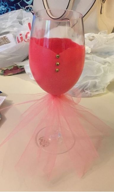 Hi all!!! I made these wine glasses for my girls. My maid of honors is a different color to match her dress. Let me know what you think!!! Xoxoxo
