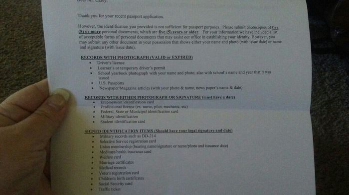 So FH got this letter in the mail regarding his passport. Only problem is we dont have 5 things on that list! We moved recently and don't really have any old paperwork. Any thoughts on what to do? Im so lost on where to get these 5 things.