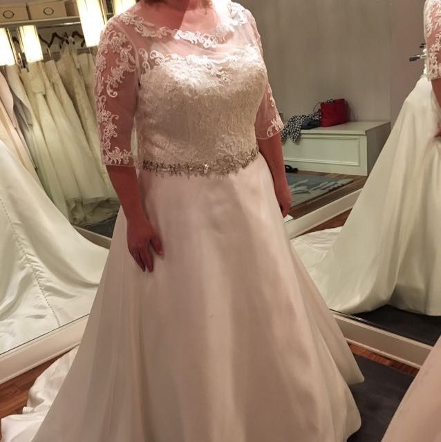 Hi everyone! I went to David's today, my first stop. I tried on about 4 dresses. This one is strapless actually but with hook-on cap sleeves. However the stylist said they had these long sleeves that she put on me which I can later have sewn on. They...