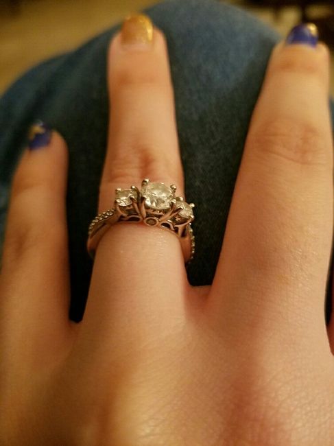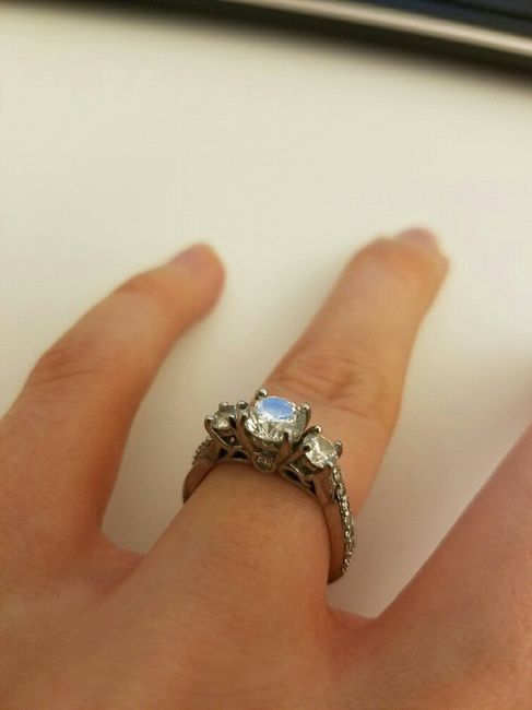 I am in love with my engagement ring! I was totally not expecting such a beautiful ring. A White Sapphire round stone and black diamonds along all sides. What do your engagement rings look, ladies?