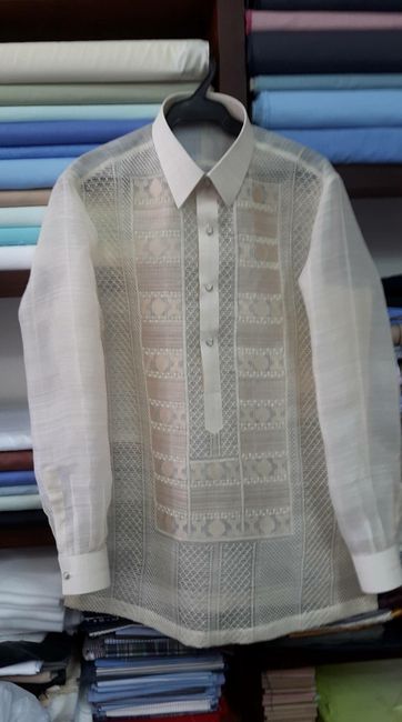 Just so happy that my FH (he's Italian/American) is wearing a Barong Tagalog (Filipino formal shirt) for our wedding. We had it custom made and the fabric is made of Pineapple Fiber. What do you think?