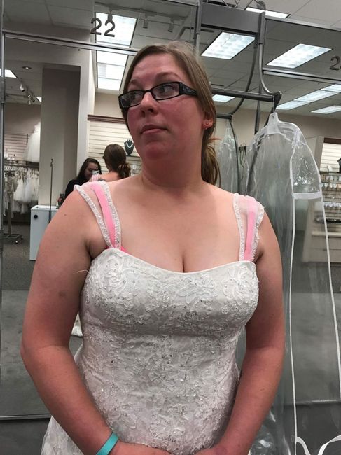 Hey guys.. So I have my first dress appointment this Saturday!! I have a dress that I am in love with, but I am having MAJOR anxiety about the dress looking horrible on me!! I have looked at every picture I can find of real brides in it, but I doubt...