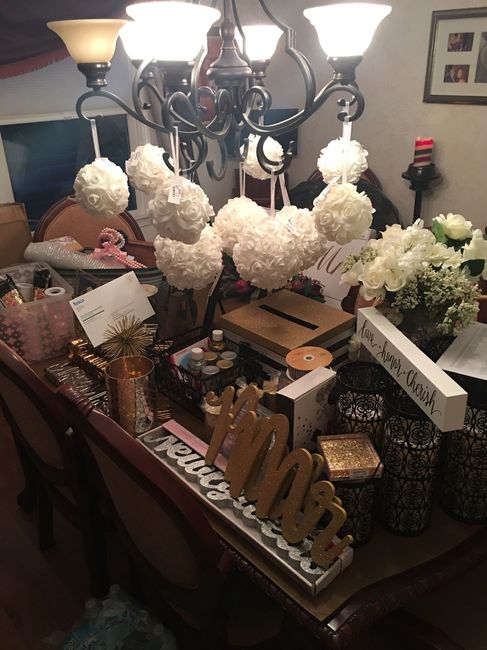Our dining room has become a catch-all for all things wedding.. already. Table numbers, other decor knickknacks- anybody else drowning in wedding decor?! Still have about 7 months to go, so maybe we're just ahead of the game? That's what I tell...