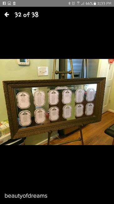 Have any of you done the mirror seating chart for your reception? I am in love with this pic from pinterest. My wedding planner tried to discourage the idea because she says that a cardboard sign is cheaper and can be done last minute to accommodate...