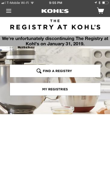 I’m not sure if this has already been posted, so disregard if so. This popped up when I attempted to access my registry. They’ll be discounting their registry on 1/31/19. If you’re getting married next year, I’d try to find similar items elsewhere....