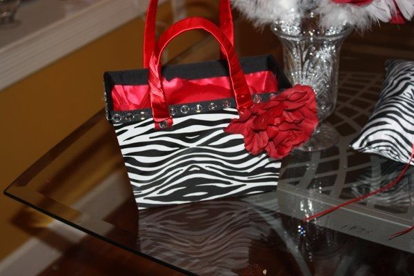 In an effort to save money I bought a pillow and two flower girl baskets from Wal-mart ($30) and intend to add just a zebra print ribbon. I pinned on the ribbon to see how it will look before I permanently add the ribbon. What do you ladies think? ...