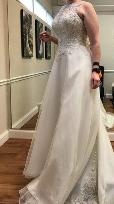 I finally made up my mind and said yes to the dress! It's hard when you're in the middle of losing weight to be happy with the way you look in your wedding dress and finally pick one. Let me see your dresses!