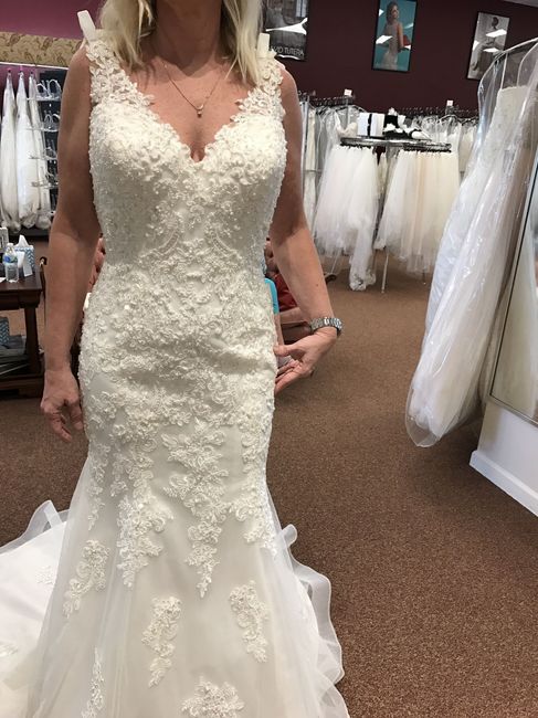 3375 days agoI am an older bride, Went in looking for a sheath, store owner suggested this fit and flare. I love the back but is this too "young" for me?I'll be 49 when we get married.