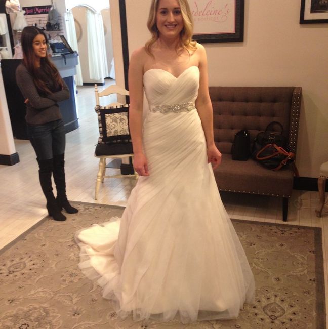 I'm so excited that my wedding is a little over three months away, can't wait to finally try on my dress again. Please post pictures of your dress! Here's mine!