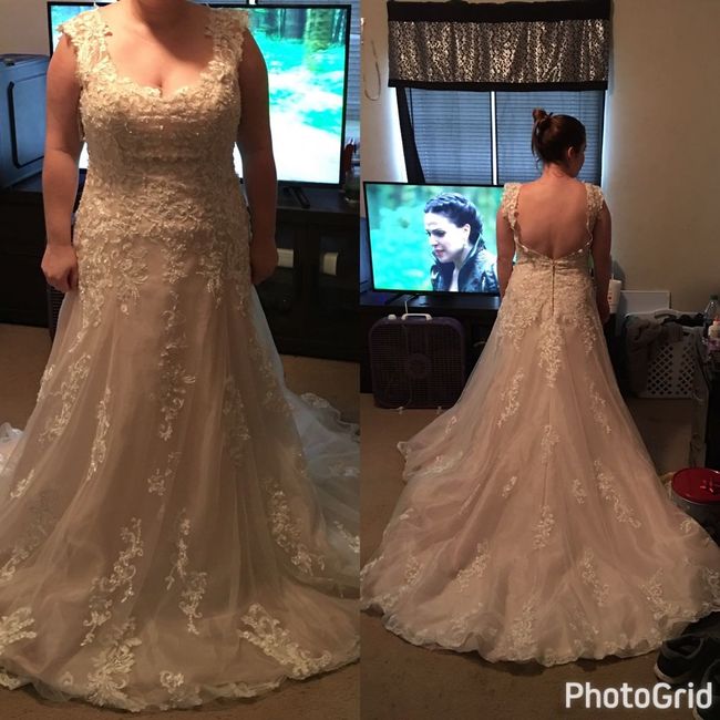 I'd like to see some dresses on real brides! I've kinda felt discouraged about my dress since I bought it because the lighting/pose I was in was weird in photos plus I just see photos of models in the dresses. Please post some pics of your dresses