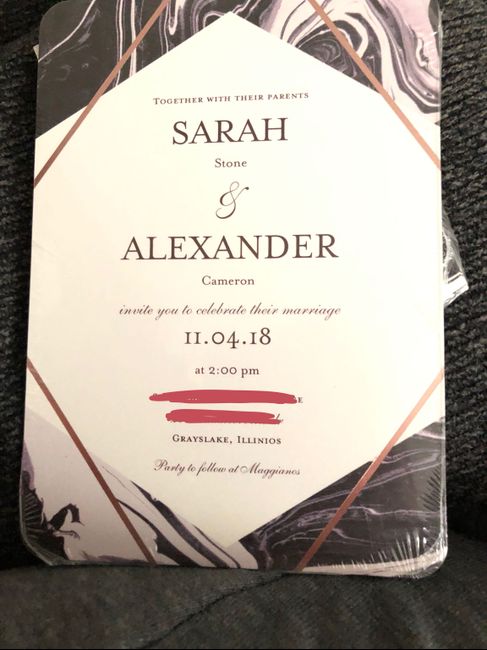 We ordered our invitations and they arived a few weeks ago. I finally opened them to take a look (I didn’t want to open them before because I don’t want them to get dirty. Idk I’m paranoid) and on the details card I said “we are so excited to...