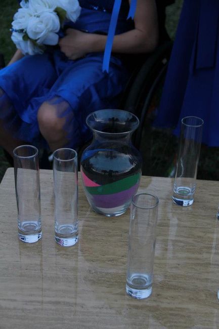 FH and I are trying to decide on sand colors for our sand ceremony (us + our seven combined children). Can y’all show me pics of your REAL finished product? All I can seem to find online are stock photos. Thank you!