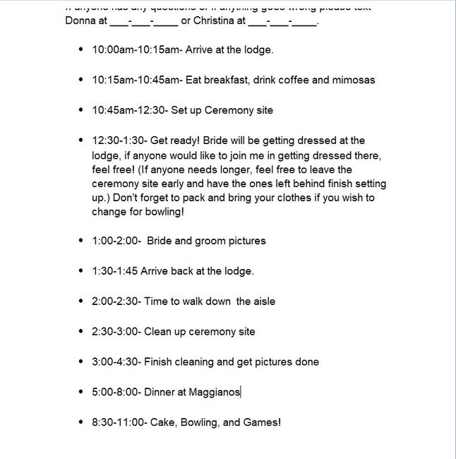 Below I will attach the schedule that I am making to give to those who offered to help me (When I say offered I don't mean I asked who was willing. These are people who came up to me/Texted me and asked me if there was an area they could help with...