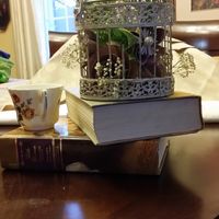 4478 days agoSo I've been working on my "Love in Literature" centerpieces for a little while now. The flowers inside are made of scrapbook paper and pearls, baby's breath, and ferns. The only thing missing is the moss that will be at the base of the books, the...