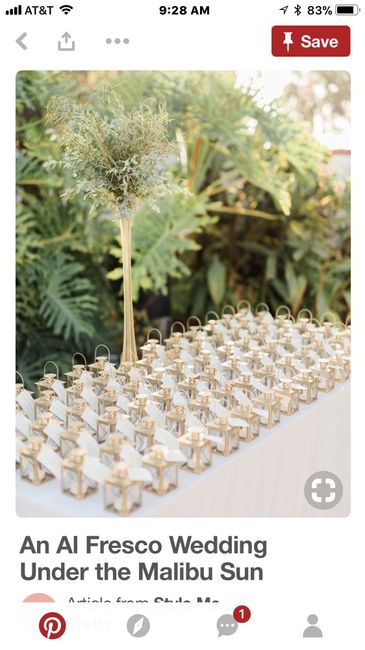 Hi all! So I’m currently in the process of trying to figure out what we’d like to do for favors. I would like to do something that I haven’t already seen at weddings. While searching Pinterest I came across a favor display of mini gold lanterns with...