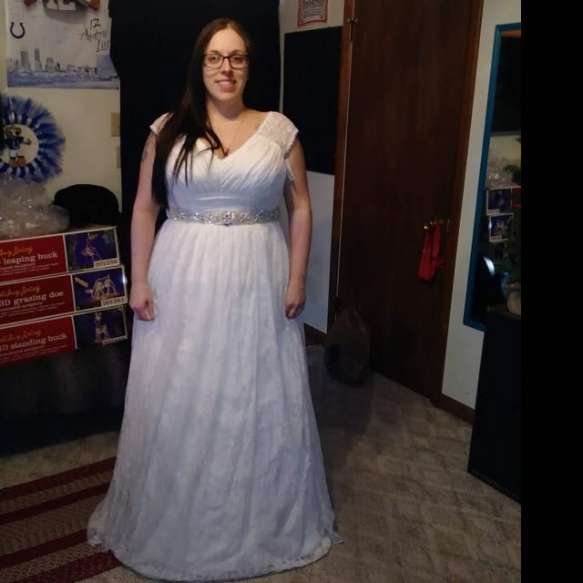 Any advice, pictures, dress choices? I went to davids and the girl had no clue. I said no ball gown and she gave me 2. I wear a size 12 pants, 44d bra and am 5ft 1. Really think I will just alter a bridesmaid dress if I have to.