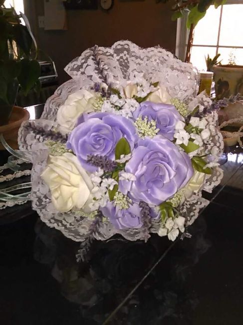 My aunt made by bouquet for me! I’m so excited! She’s also making the bridesmaids bouquets. The lace will match my dress, and the white roses go all the way around the bouquet. I can’t wait to see it in person!